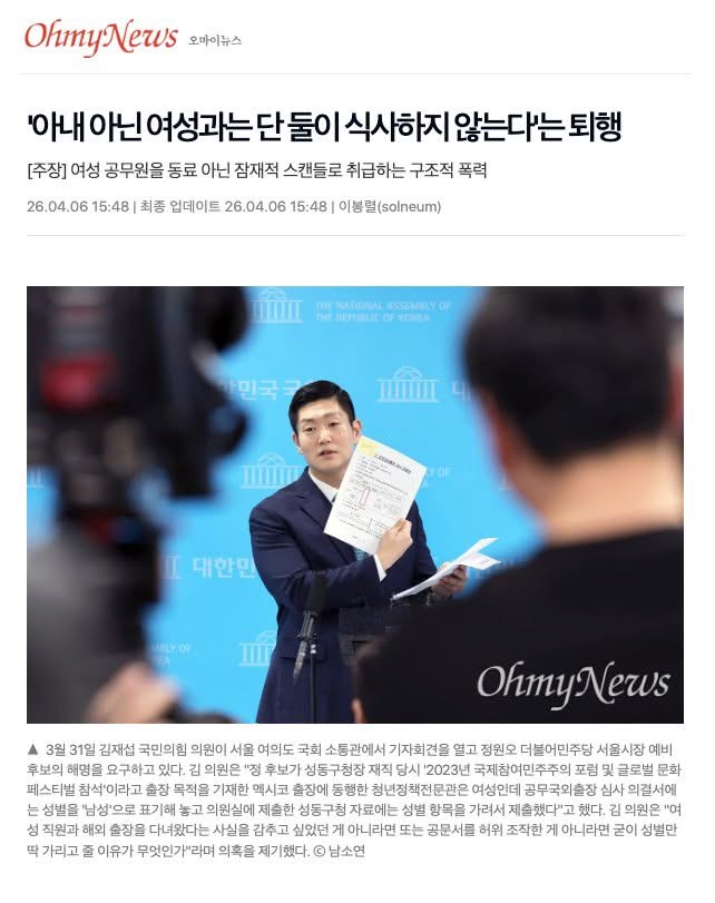 이게 문제인 건 이런 일이 반복될수록 직장에서 혹은 공직사회에서 여성이 설 자리가 자꾸만 좁아진다는 거야.