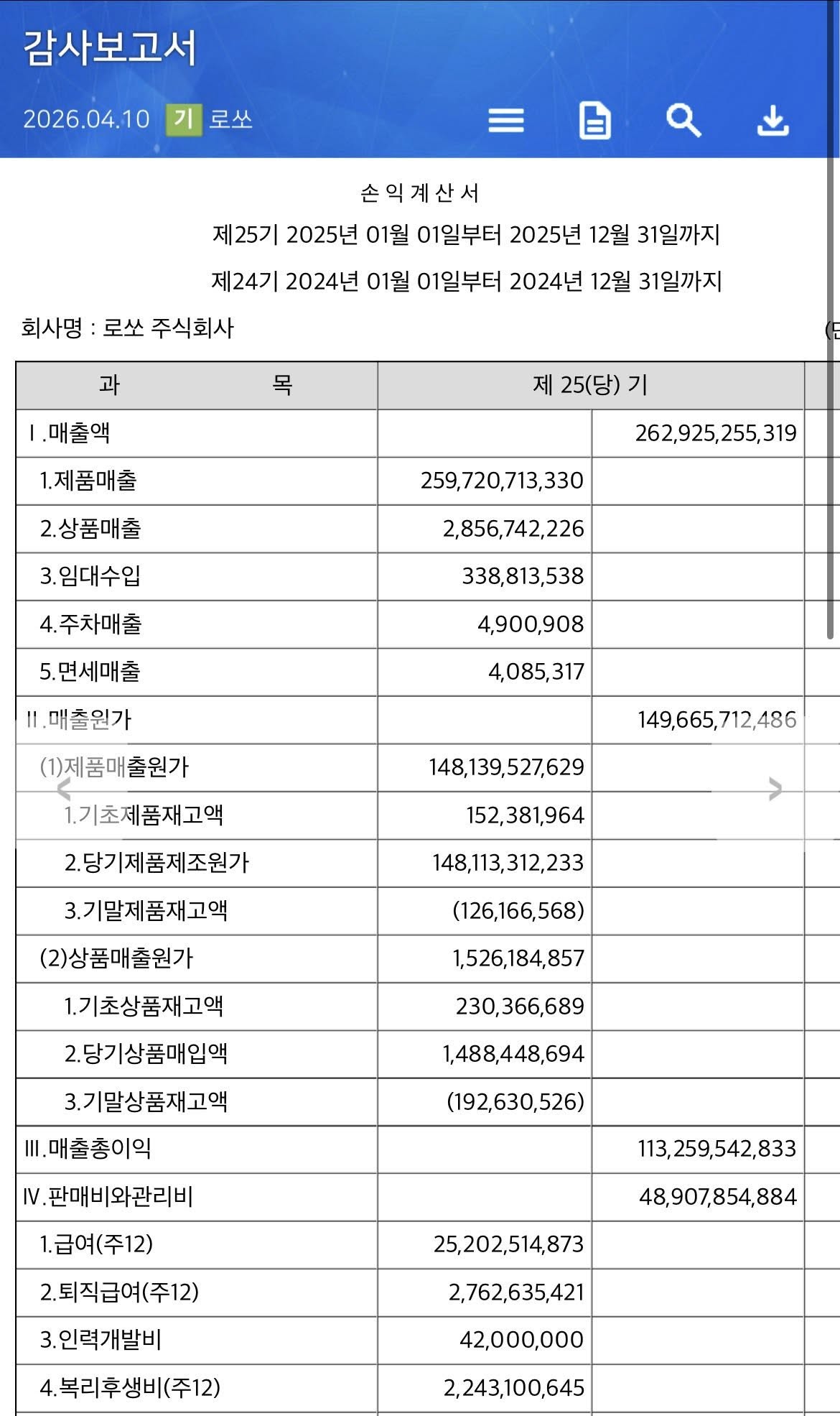 성심당(주식회사 로쏘)의 2025년 실적이 조금 전에 나왔다.