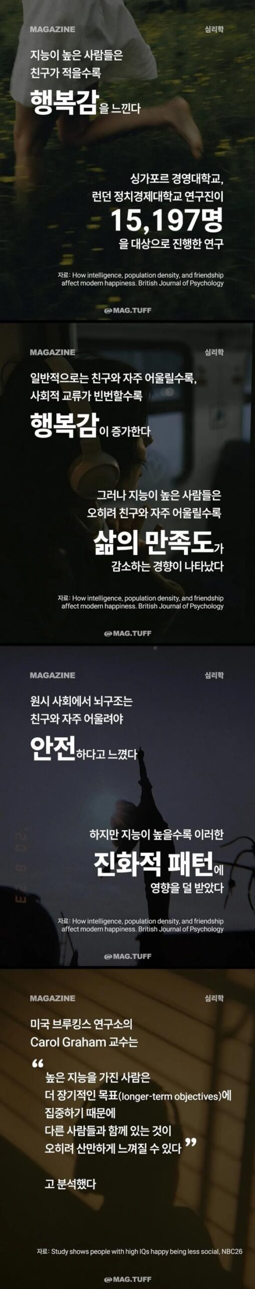 지능이 높은 사람은 친구가 적을수록 행복하다
