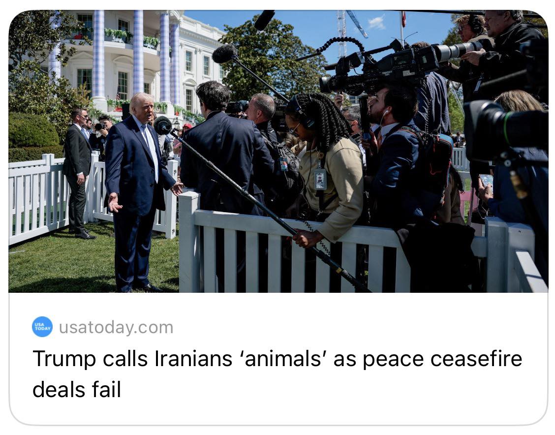 "이란인들은 동물들이므로 그들의 교량이나 발전소를 폭격하는 것은 전쟁 범죄가 아니다"