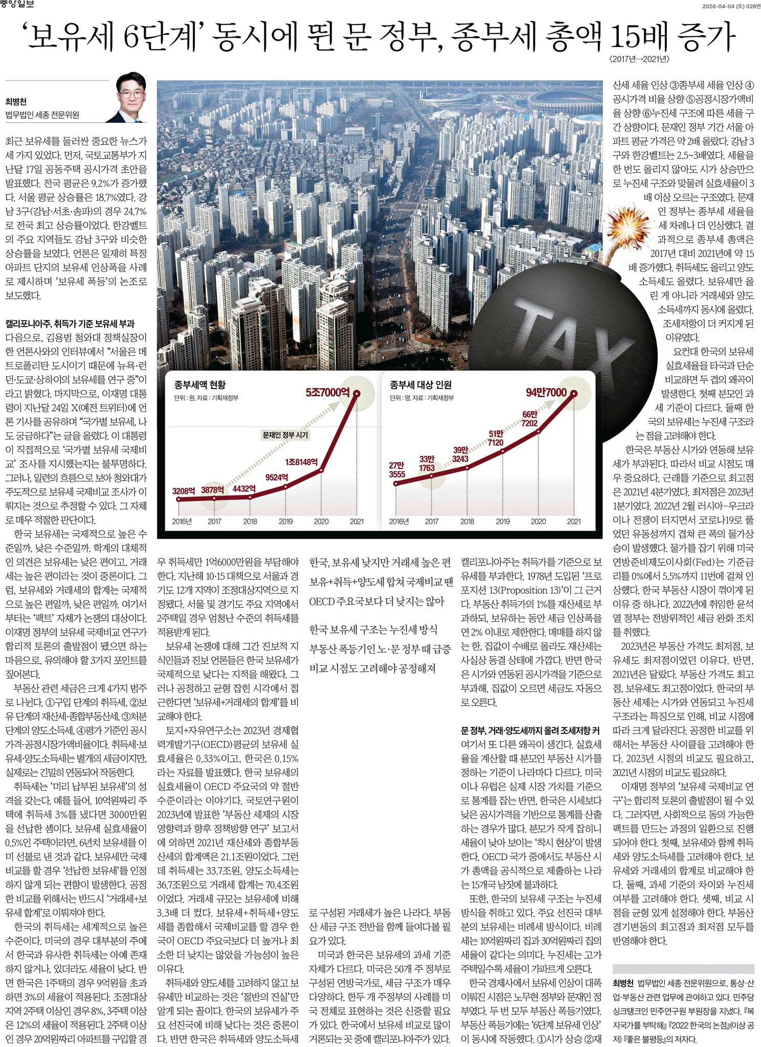요컨대 한국의 보유세 실효세율을 타국과 단순 비교하면 두 겹의 왜곡이 발생한다. 첫째 분모인 과세 기준이 다르다. 둘째 한국의 보유세는 누진세 구조라는 점을 고려해야 한다.